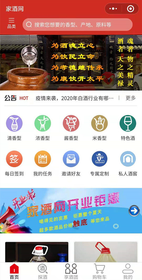 家酒网是四川壹家亲酒业有限责任公司旗下专注健康酒的酒类直供平台,平台采用F2C+移动互联网+新零售的模型,通过线上购买,线下体验的模式平台化经营,供应产品种类繁多,为用户带来更专业化、多元化、个性化的消费场景体验,引领散装酒类行业的变革。